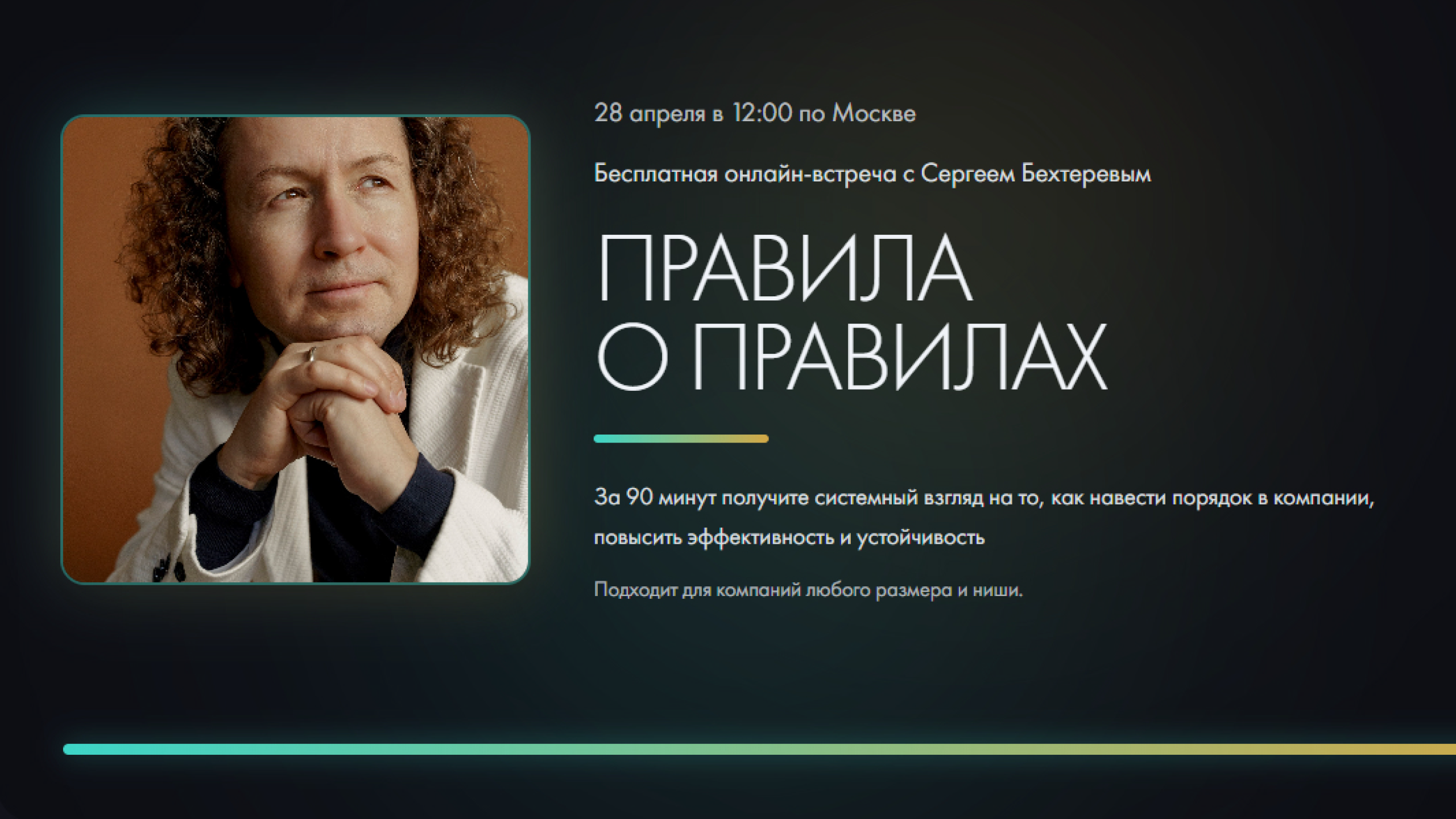 ОтзывВ связи ч динамичным развитием банка для нас стали весьма актуальны вопросы повышения эффективности работы сотрудников. Подходы и методики Сергея Бехтерева позволяют решать как стратегические, так и оперативные задачи мен...